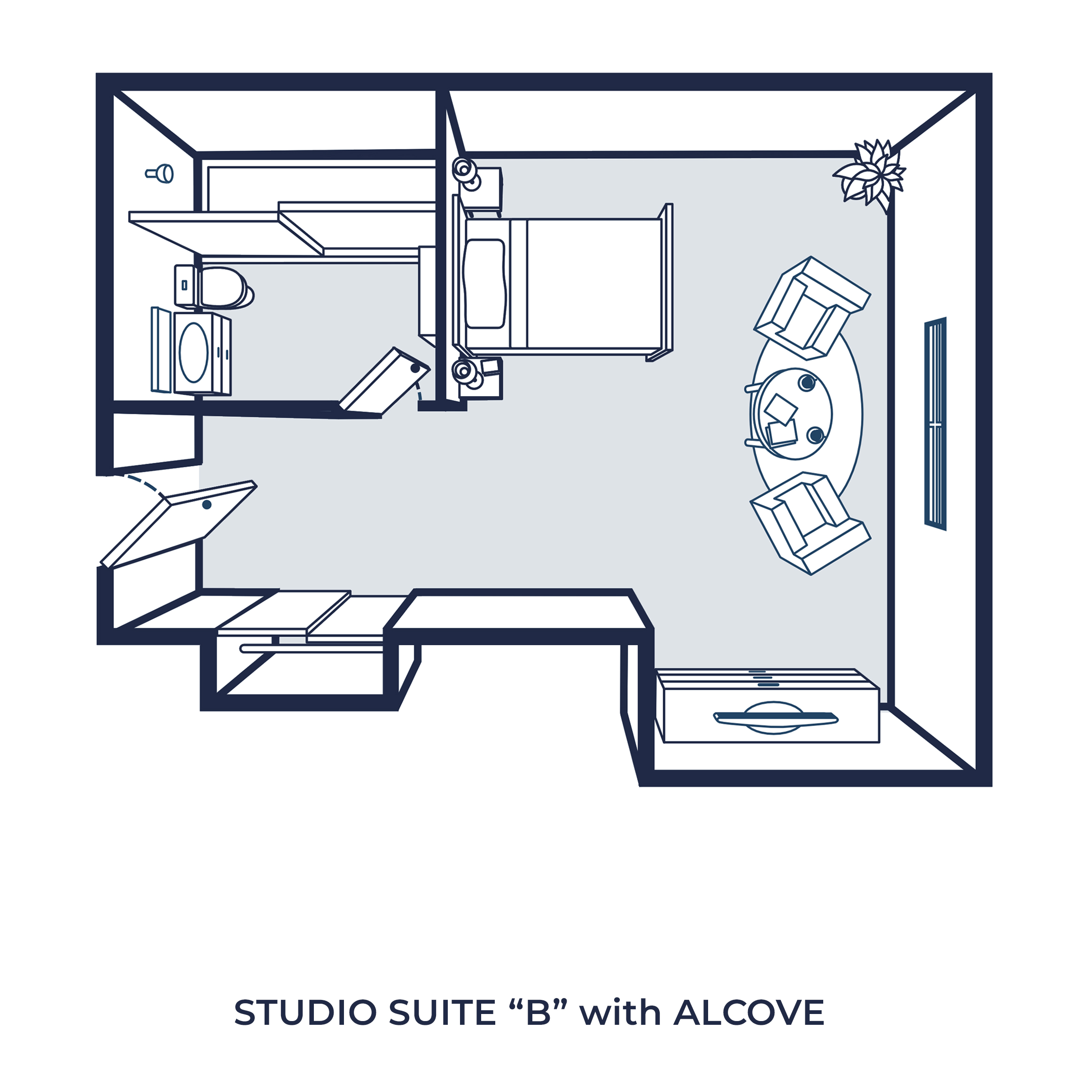 Each suite is private and ready to make your own. Bring your furniture, add your keepsakes, and feel at home from day one.